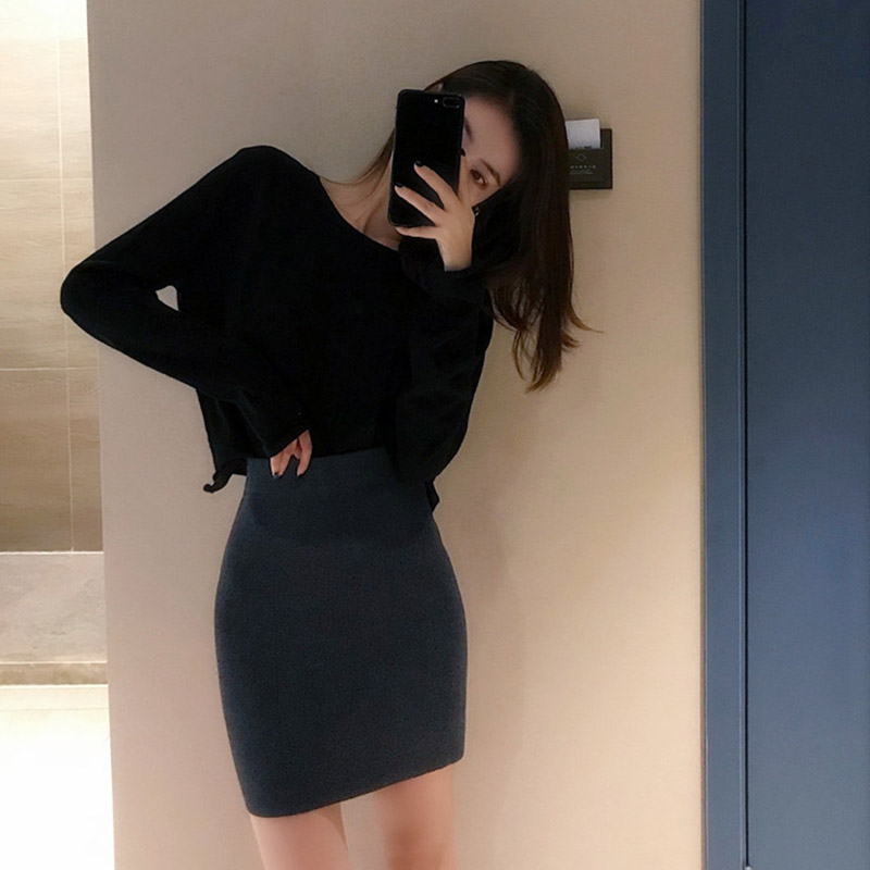 / 韓版寬松套頭針織衫+針織高腰包臀半身裙時尚女神套裝秋兩件套潮