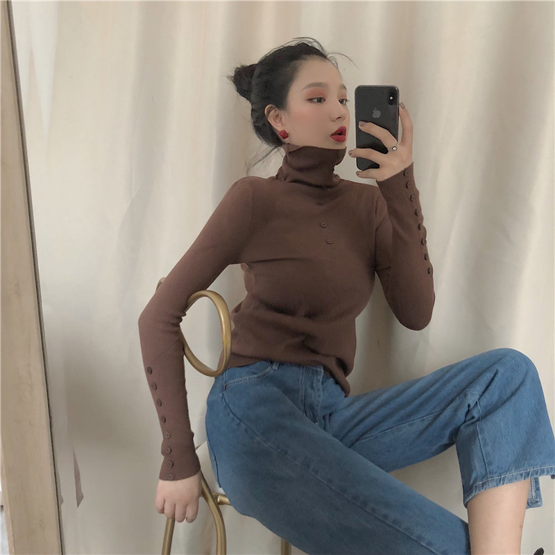 時尚chic早秋毛衣慵懶風韓版打底針織衫氣質高領修身包芯紗上衣潮