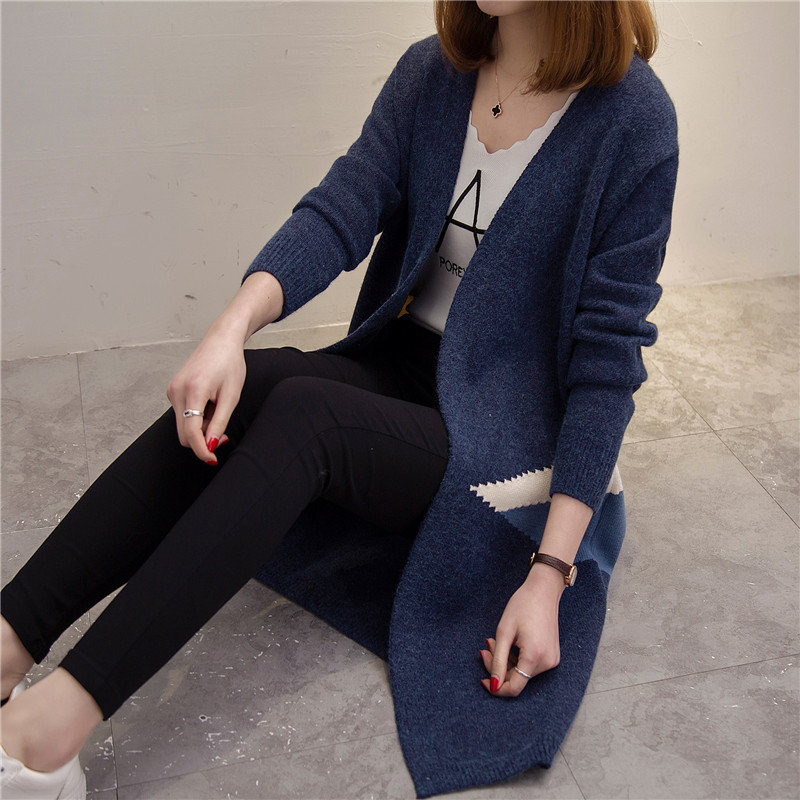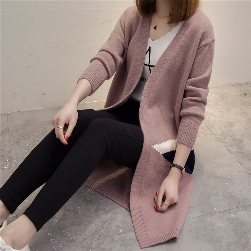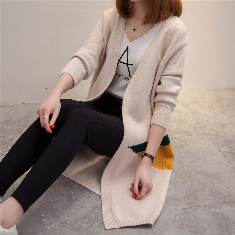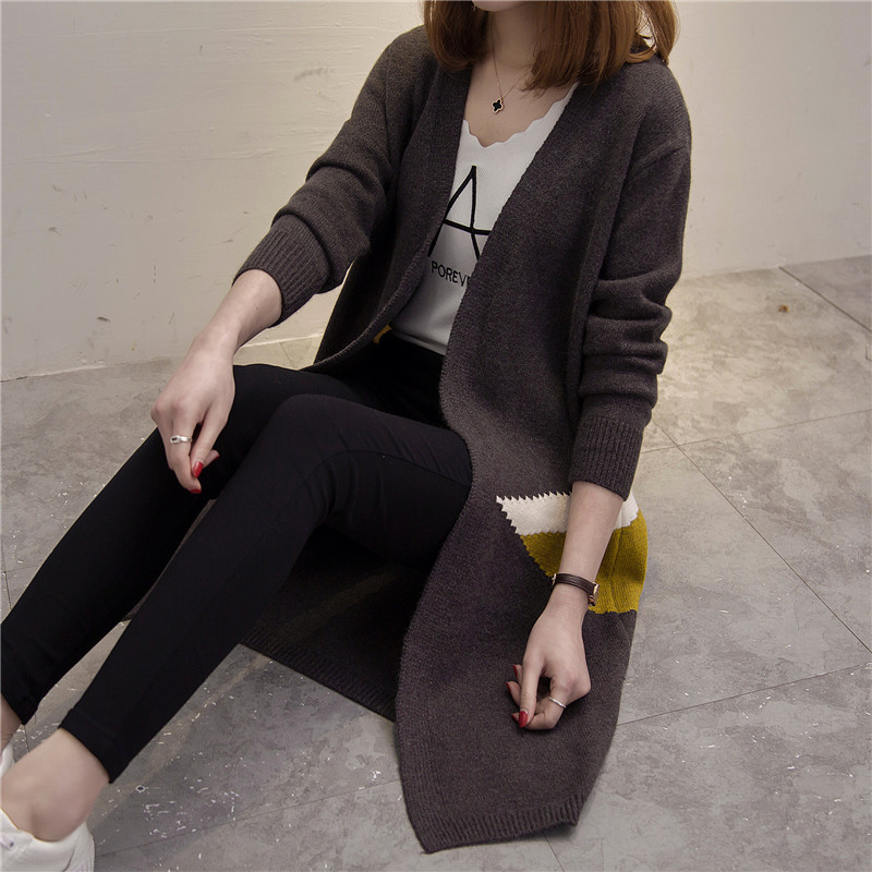 / 女裝春裝新款潮寬松韓版中長款毛衣外套女針織衫開衫學生上衣