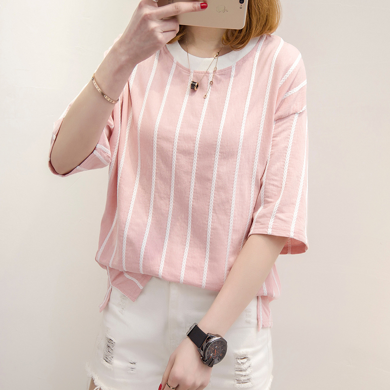 / 夏季女裝新款條紋短袖t恤女寬松韓版百搭學生打底衫上衣女夏