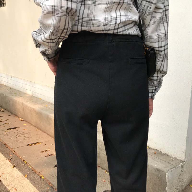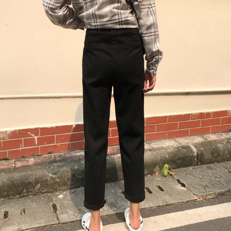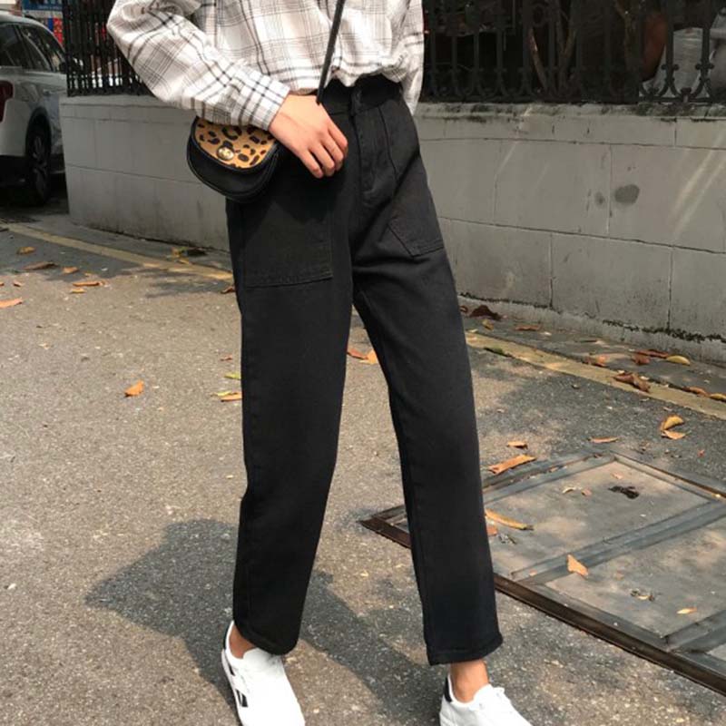 / 高腰顯瘦復古風黑色牛仔褲女秋裝新款寬松直筒褲學生休閑九分褲子