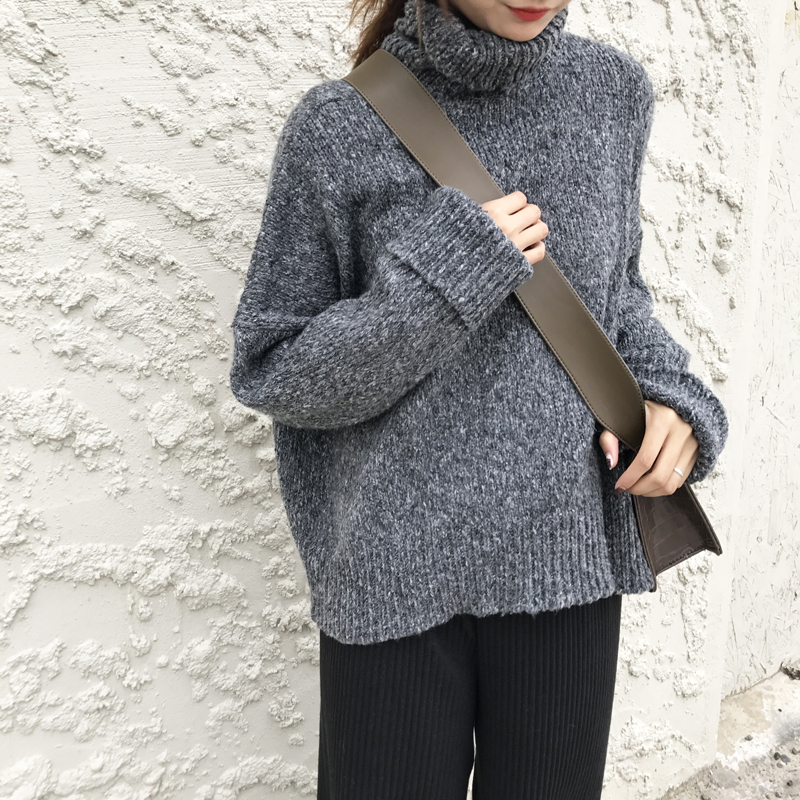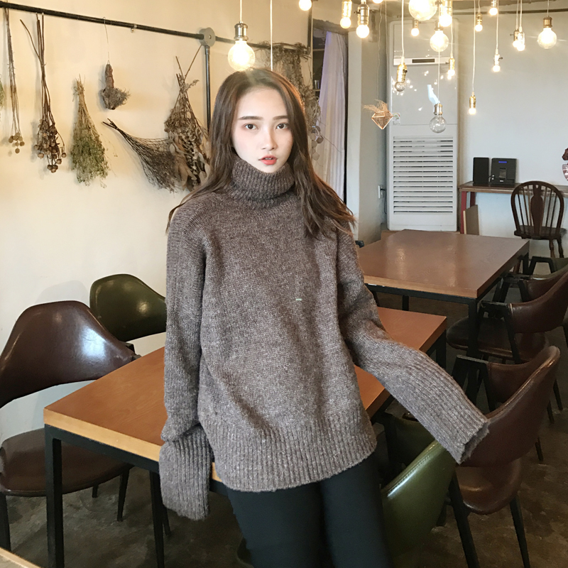 韓系早秋時尚網紅毛衣女2018新款寬松慵懶風加厚高領顯瘦遮臀毛衣