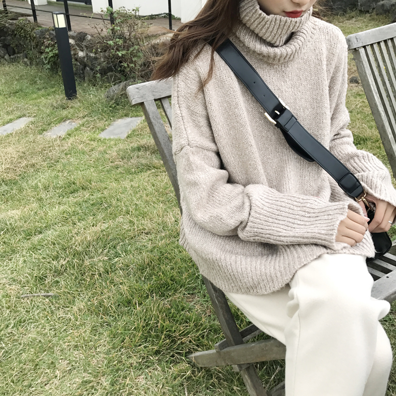 2018早秋針織衫女軟軟的暖暖的加厚高領長袖寬松套頭棒針粗線毛衣