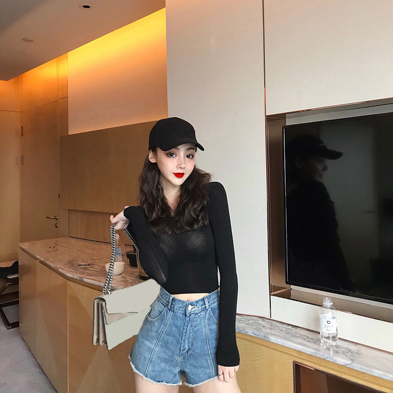 可以下半身只穿一條短褲穿,也可以搭牛仔褲,或者A字裙