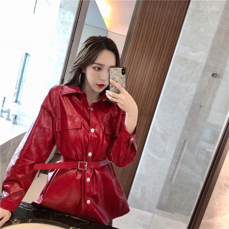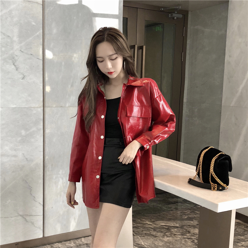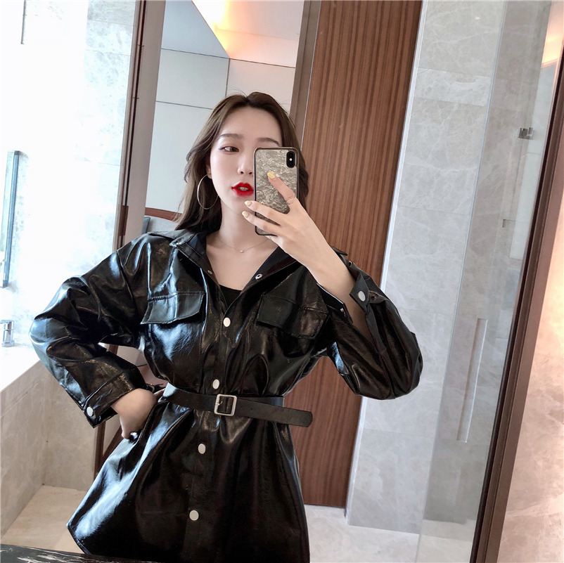 這款中長款PU外套,加入些許時尚元素,