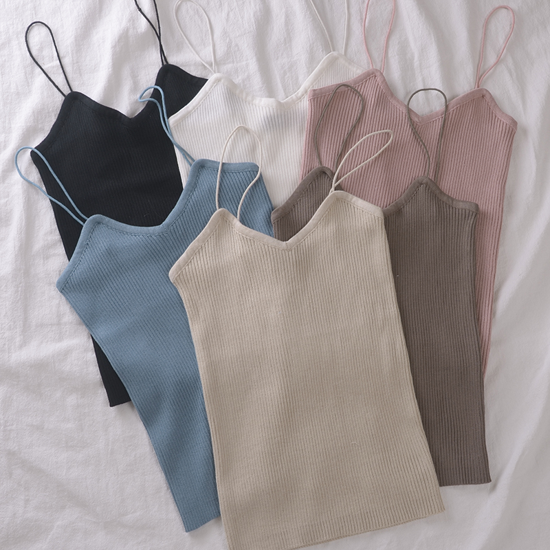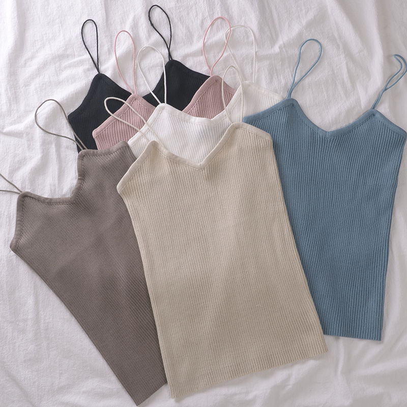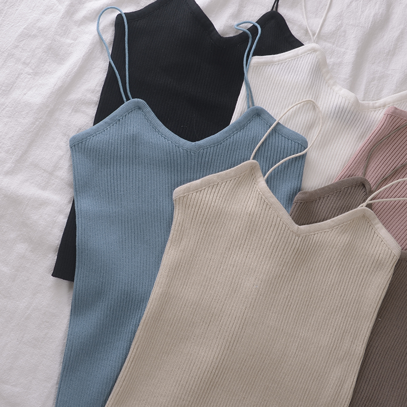 / 夏季新款女裝韓版修身細吊帶內搭小衫時尚豎條紋針織打底小背心女