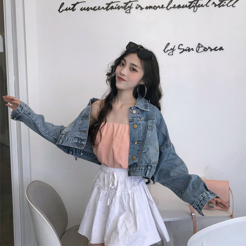 港風怪味少女短款長袖顯瘦牛仔外套女春秋時尚百搭韓版牛仔衣夾克