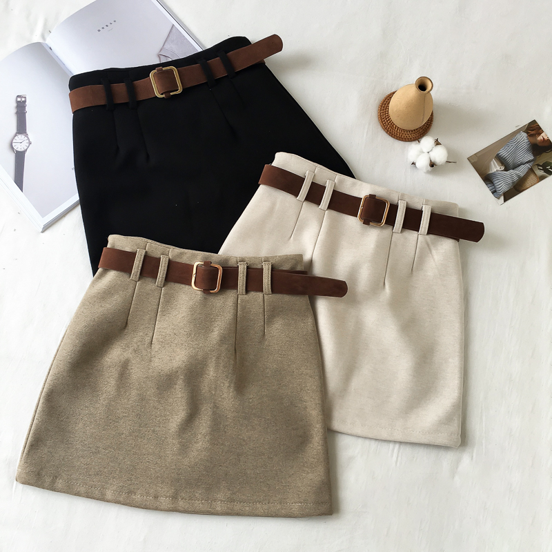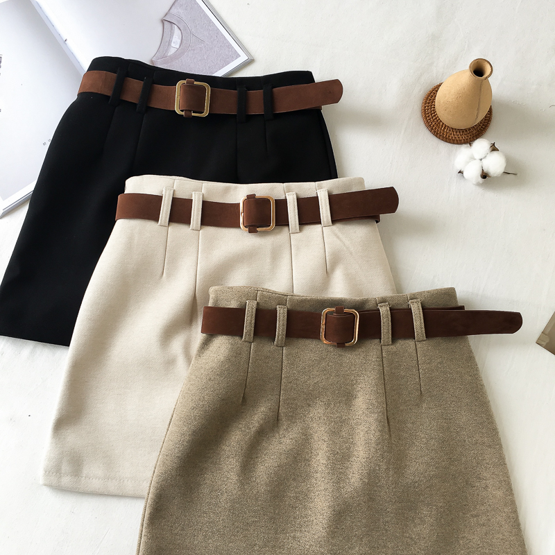 港味秋冬2018新款毛呢裙子半身裙女加厚短裙呢子裙a字裙子送皮帶