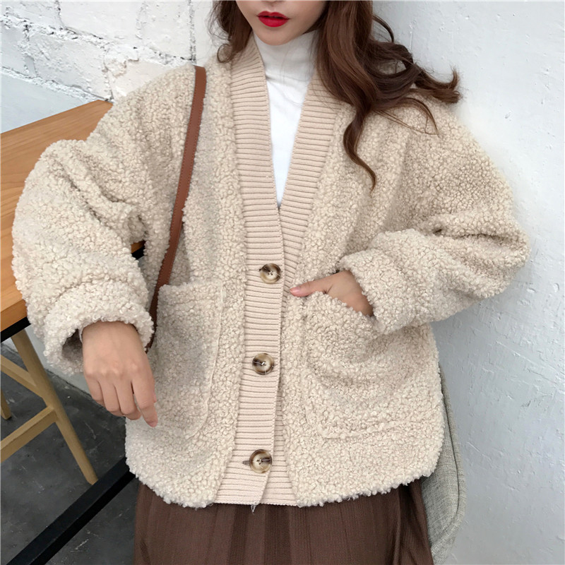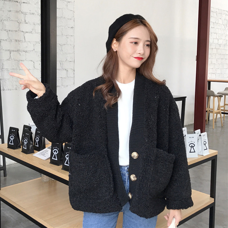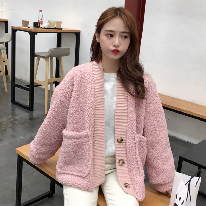 外套女秋冬裝2018新款韓版寬松加厚保暖雙層仿羊羔毛休閑披肩開衫