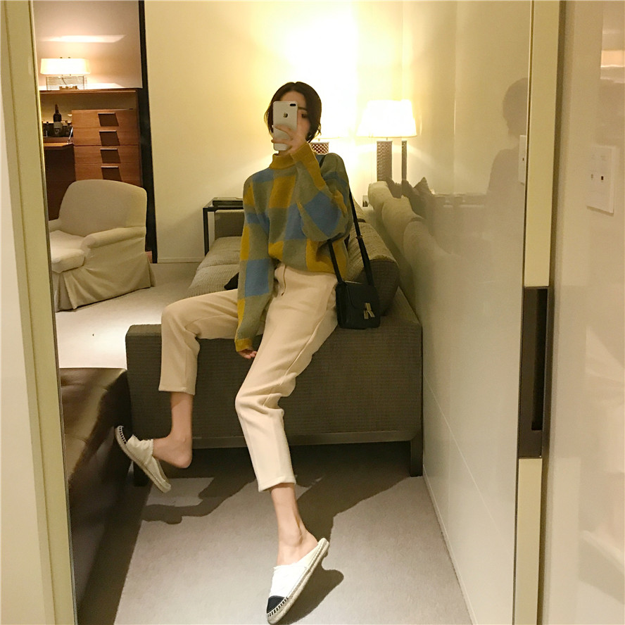 毛呢褲子|格子毛衣
