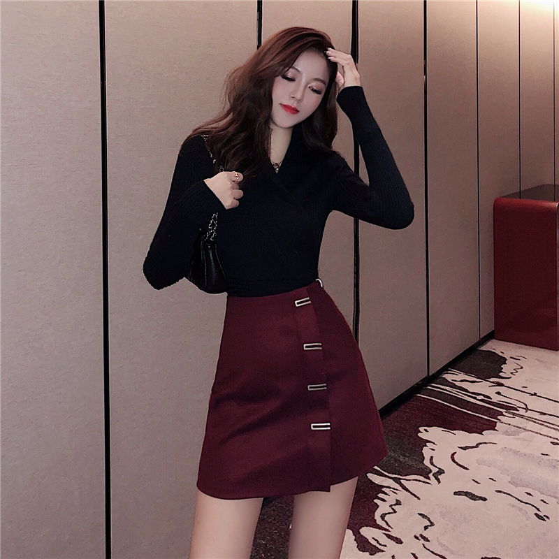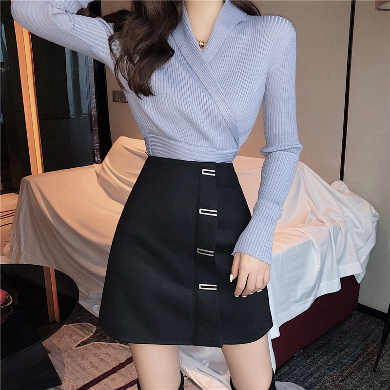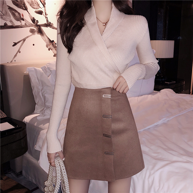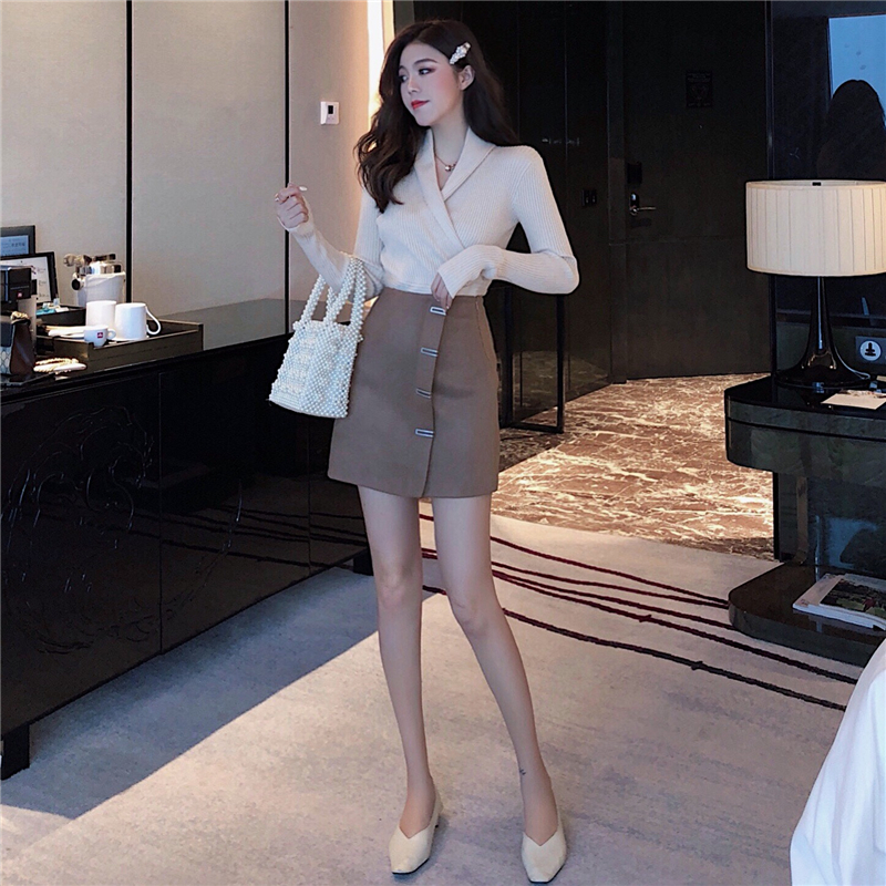 / 新款韓版秋冬韓版包臀顯瘦半身裙A字裙修身氣質翻領毛衣時尚套裝