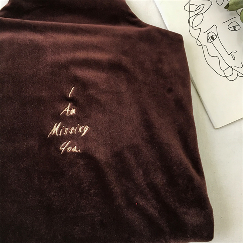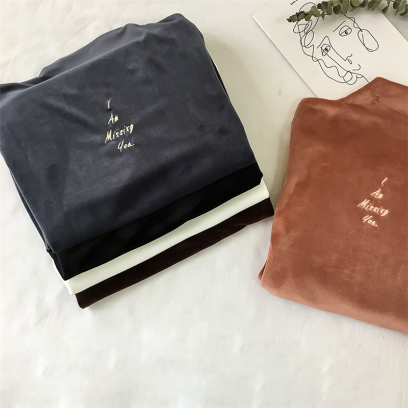 / 糖果色高領絲絨字母T恤秋裝女2018新款修身顯瘦氣質長袖打底上衣