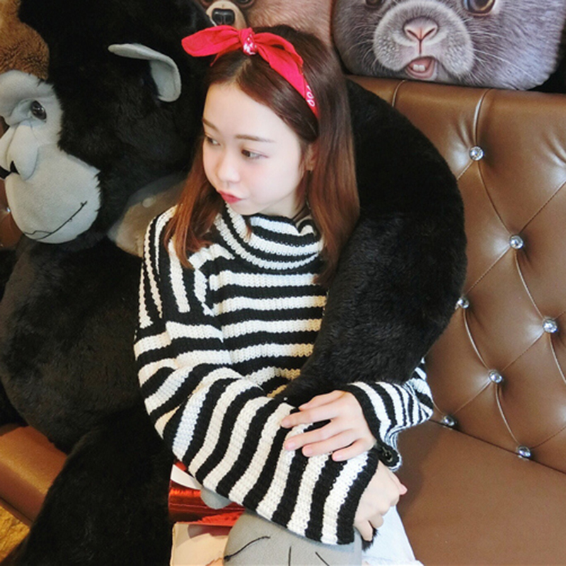 寬松高領黑白條紋毛衣女秋冬裝2018新款慵懶長袖針織外套學生上衣