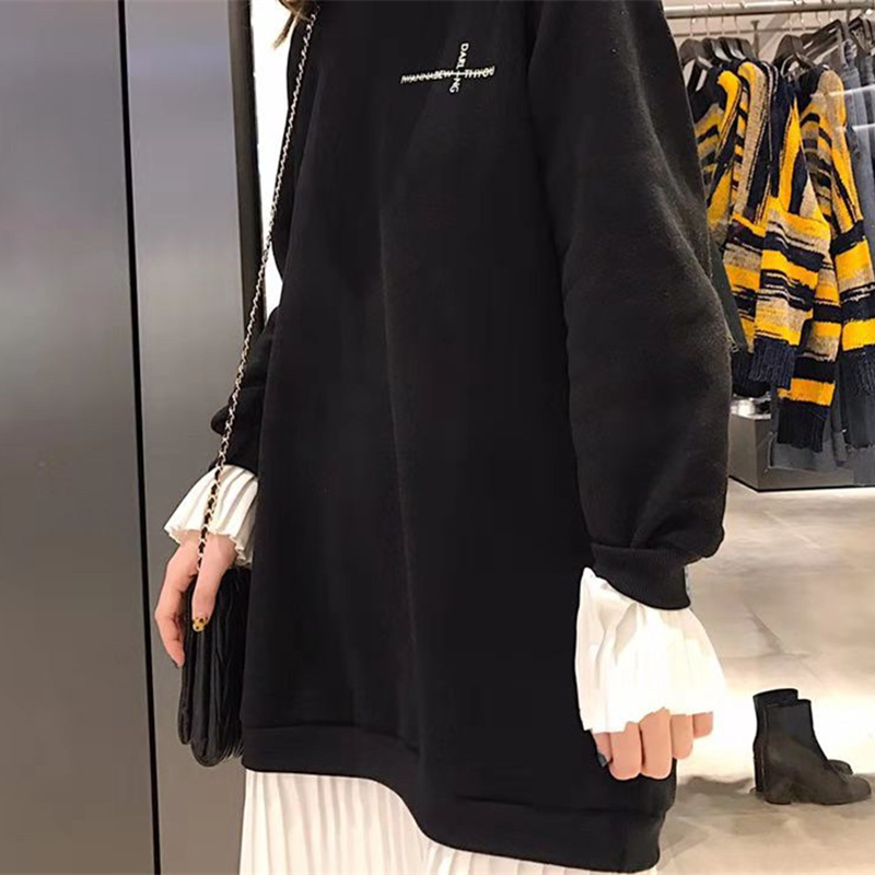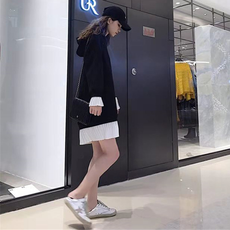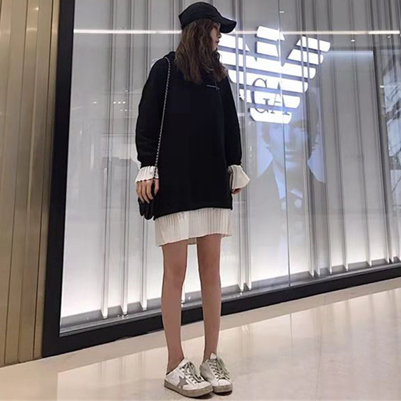拼色假兩件衛衣2018新款女秋冬裝港風連帽長袖外套寬松慵懶上衣潮