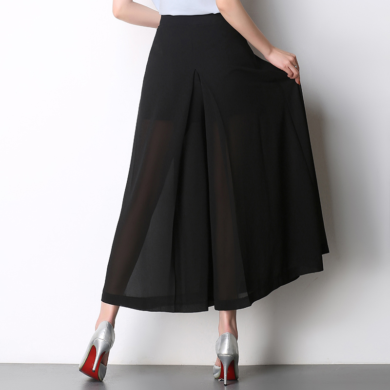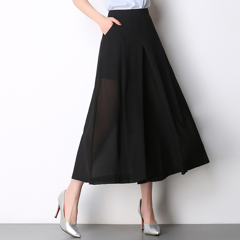 / 雪紡闊腿褲女九分褲春夏季高腰薄款寬腿褲大碼休閑褲甩褲裙褲