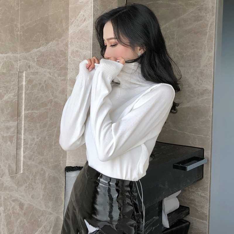 chic高領打底薄毛衣女秋冬裝2018新款韓版氣質黑色顯瘦長袖針織衫