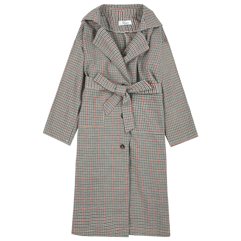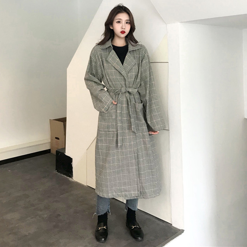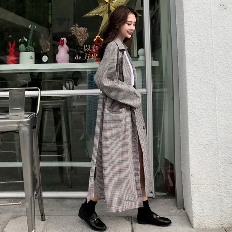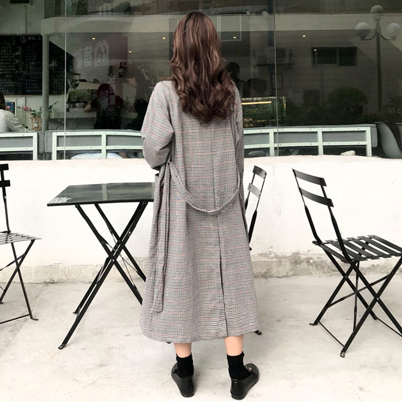 秋裝女2018新款港味復古中長款格子風衣寬松收腰綁帶長袖外套開衫