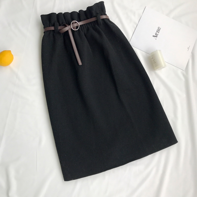 / 中長款毛呢裙子秋冬裝女2018新款韓版氣質松緊高腰A字開叉半身裙