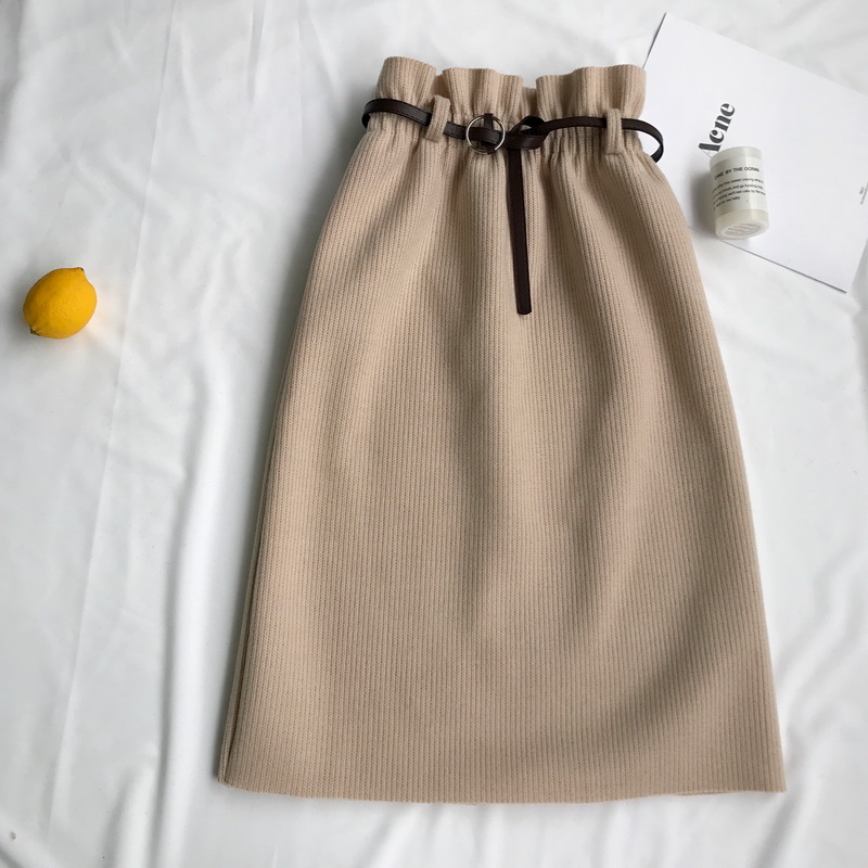 中長款毛呢裙子秋冬裝女2018新款韓版氣質松緊高腰A字開叉半身裙