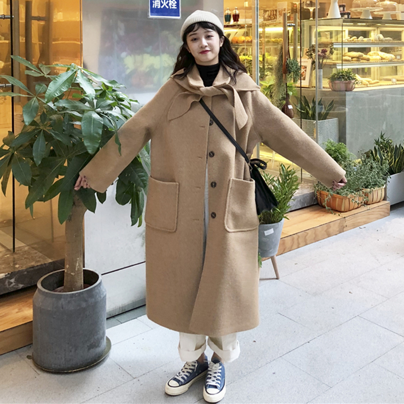 秋冬女裝2018新款流行呢子大衣學生長款風衣時尚休閑長袖毛呢外套
