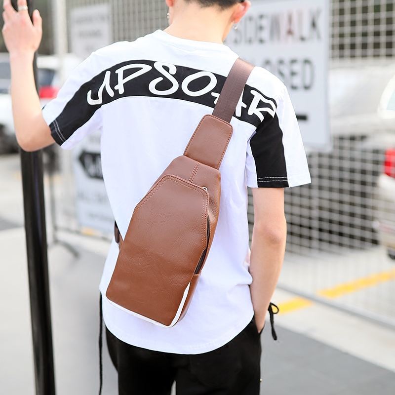 / 韓版新款胸前包潮流皮質學生小胸包單肩包商務運動時尚小背包男包