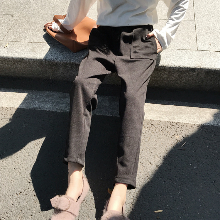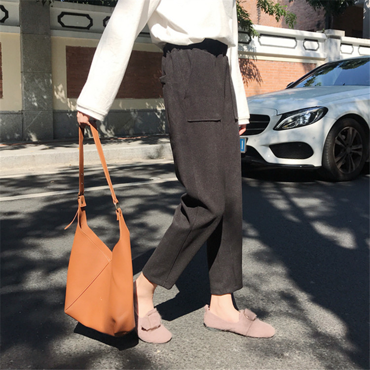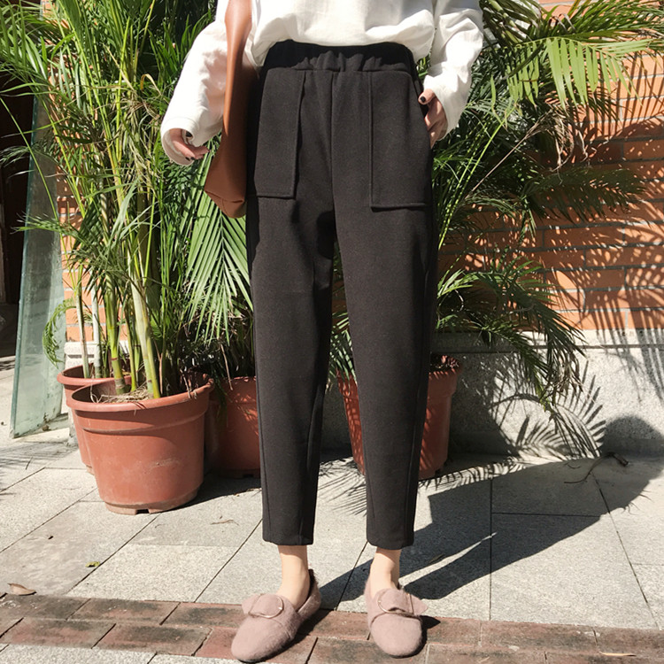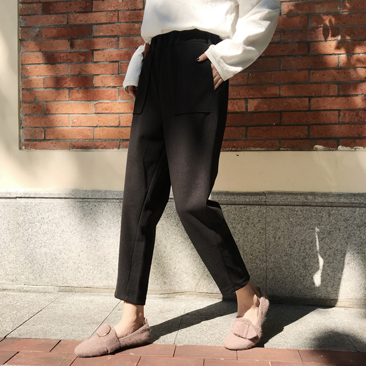 / 韓版chic百搭高腰顯瘦小腳褲蘿卜褲港味休閑毛呢褲女