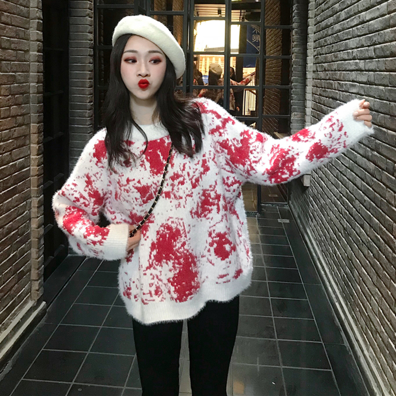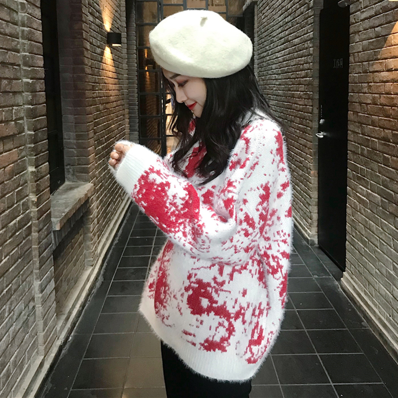 / 慵懶風寬松撞色毛絨絨外套女秋冬裝2018新款韓版網紅套頭針織毛衣