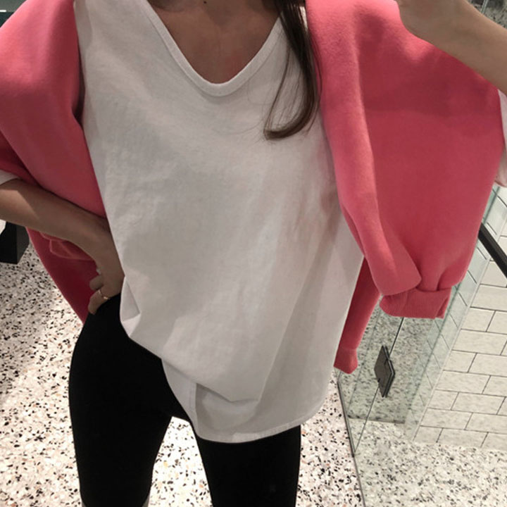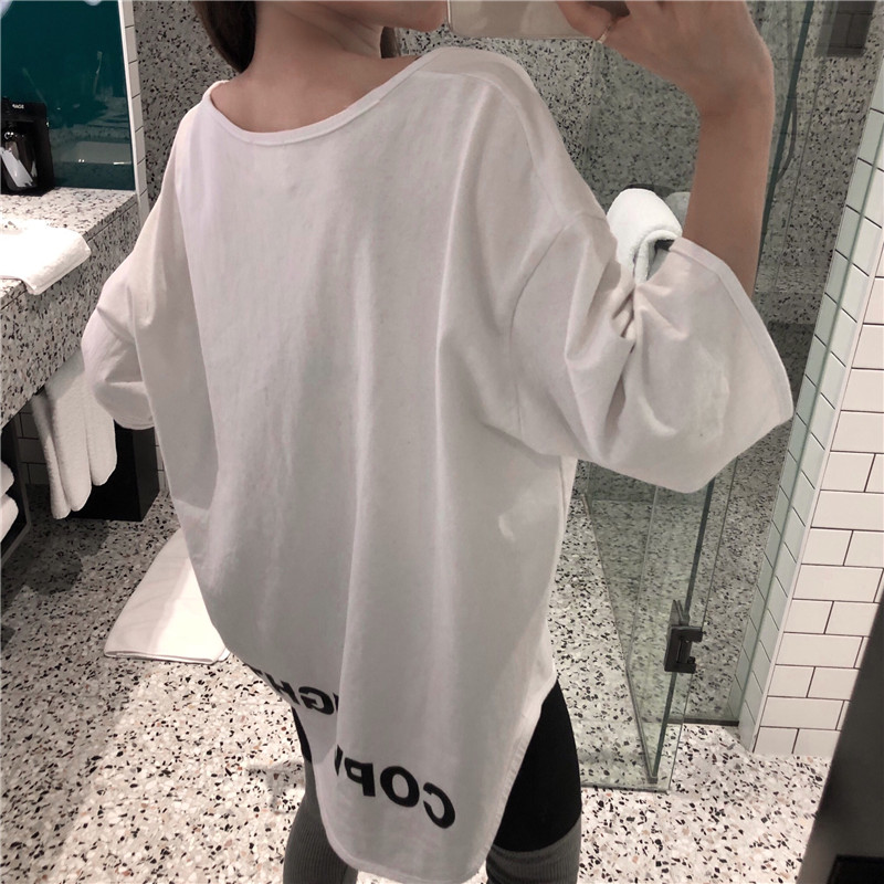 / 韓版v領后背字母半袖慵懶寬松純色打底衫上衣女2018新款T恤內搭