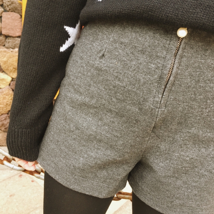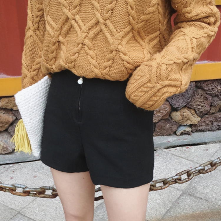 / 韓國秋冬款修身高腰百搭彈力闊腿褲靴褲女加厚毛呢短褲休閑褲