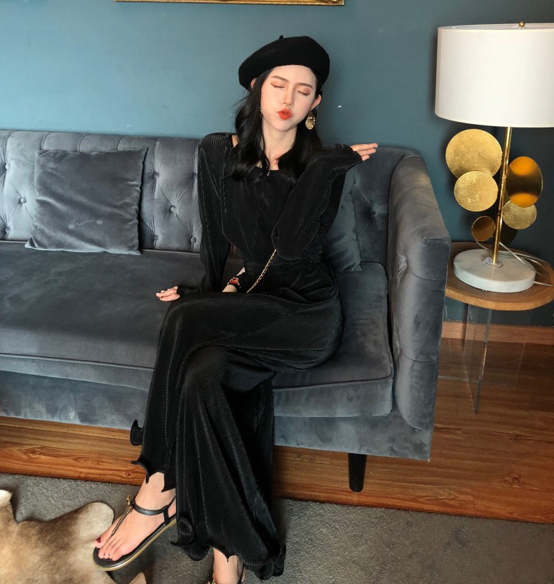 秋裝新款百搭長袖短款系帶上衣高腰闊腿長褲兩件套港風時尚套裝女