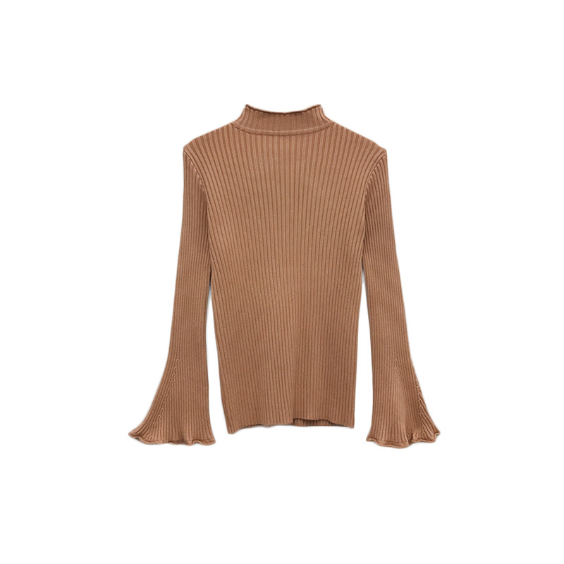 韓風時尚多色百搭喇叭袖加厚毛衣女秋冬2018新款打底針織衫上衣潮