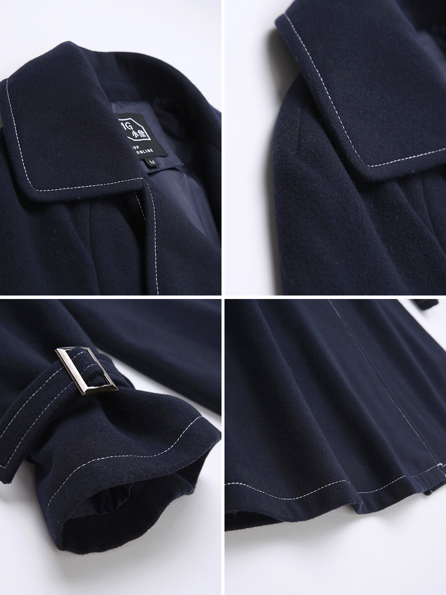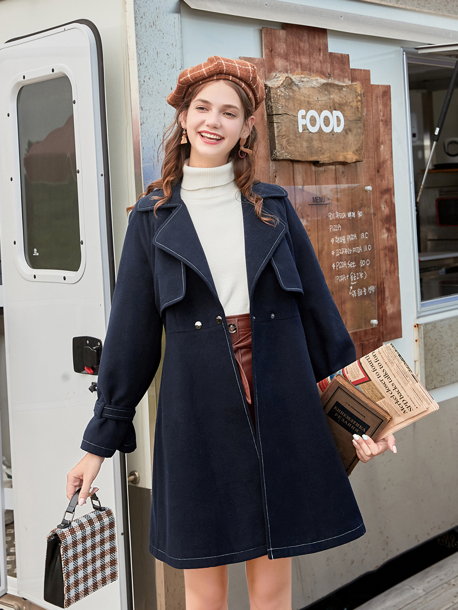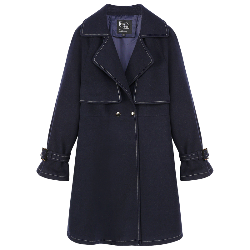 / MG小象流行藍色大衣女中長款學生冬季2018新款寬松學院風毛呢外套