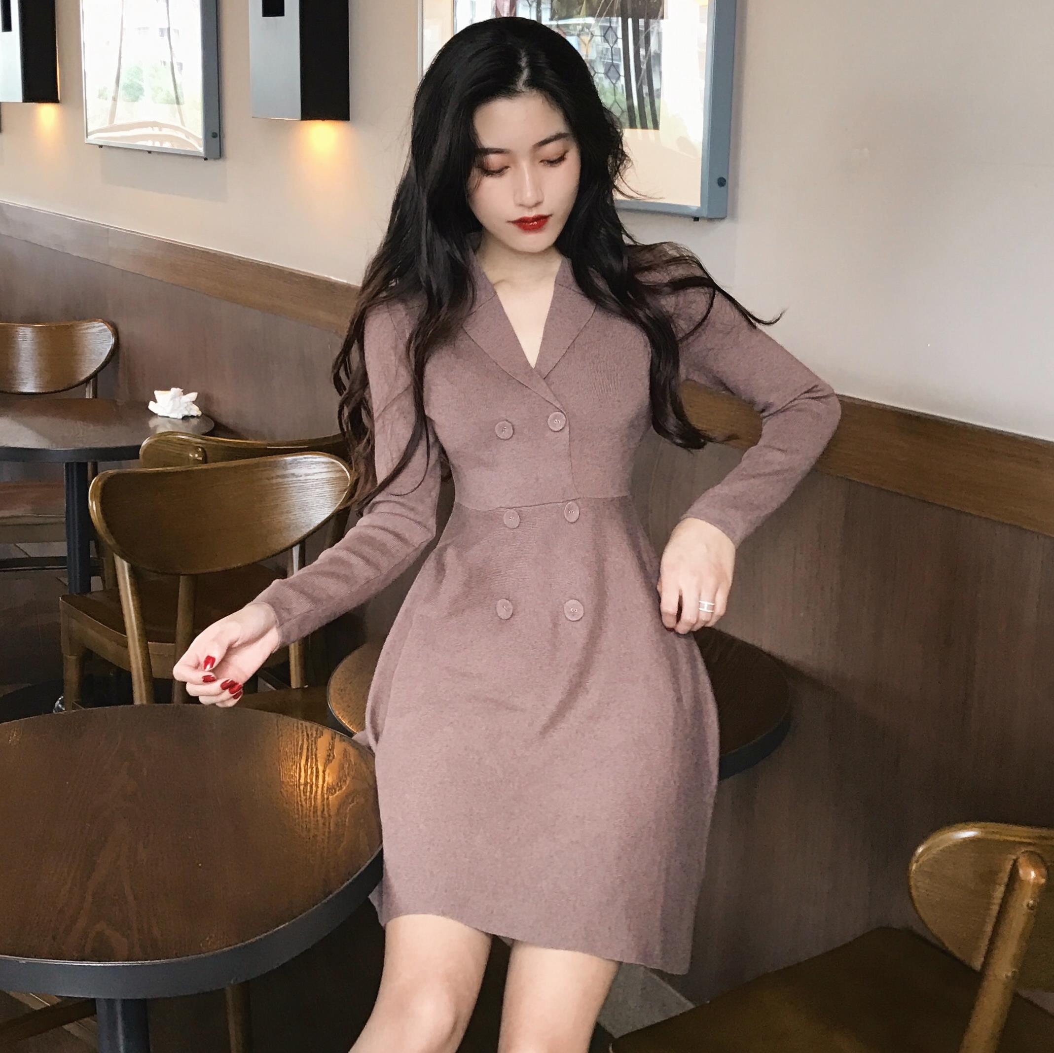 韓版初冬氣質溫柔風毛衣裙女冬裝2018新款女百搭顯腿長針織連衣裙