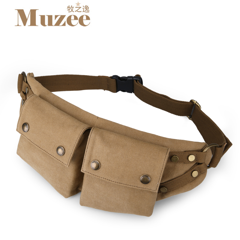 / 牧之復古腰包男士多功能休閑帆布小包時尚斜挎包戶外運動胸包