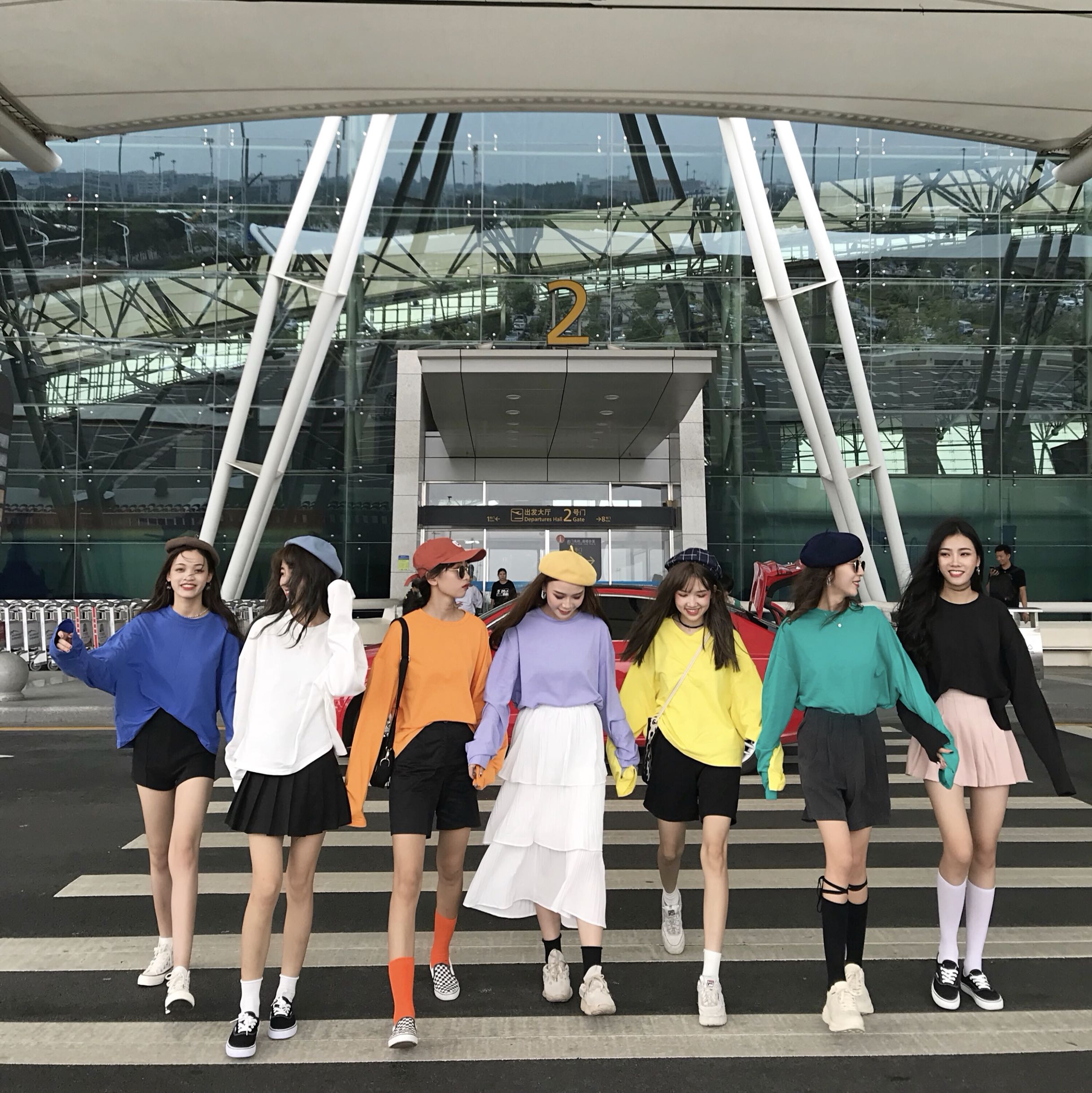 秋天上衣女新款時尚百搭基礎寬松馬卡龍純色圓領中長款T恤10色入