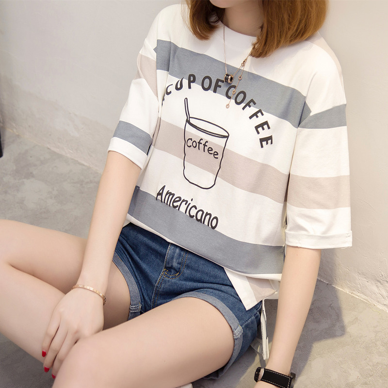 / 條紋短袖t恤女寬松韓版學生百搭bf風體恤小清新上衣夏裝新款