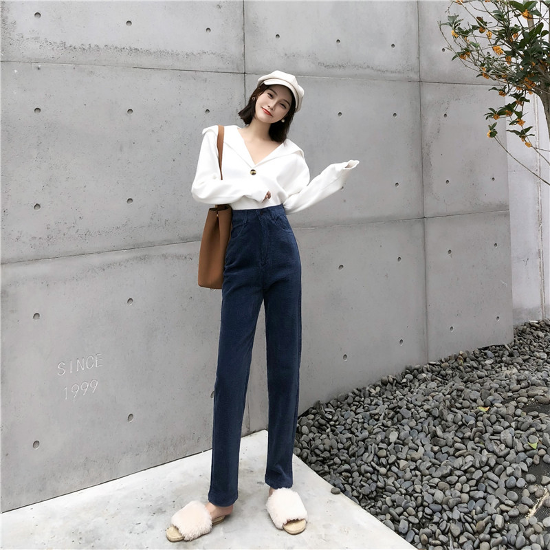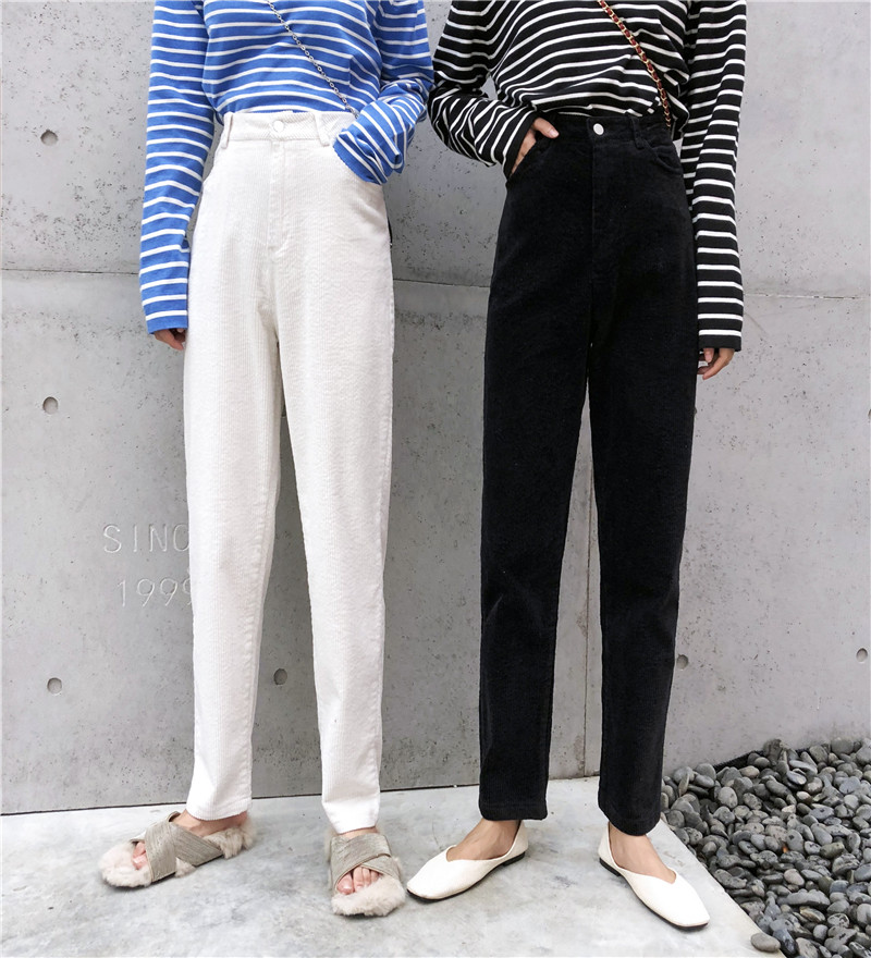 / 褲子女新款時尚chic百搭氣質寬松韓版條絨九分褲冬季顯瘦哈倫褲潮