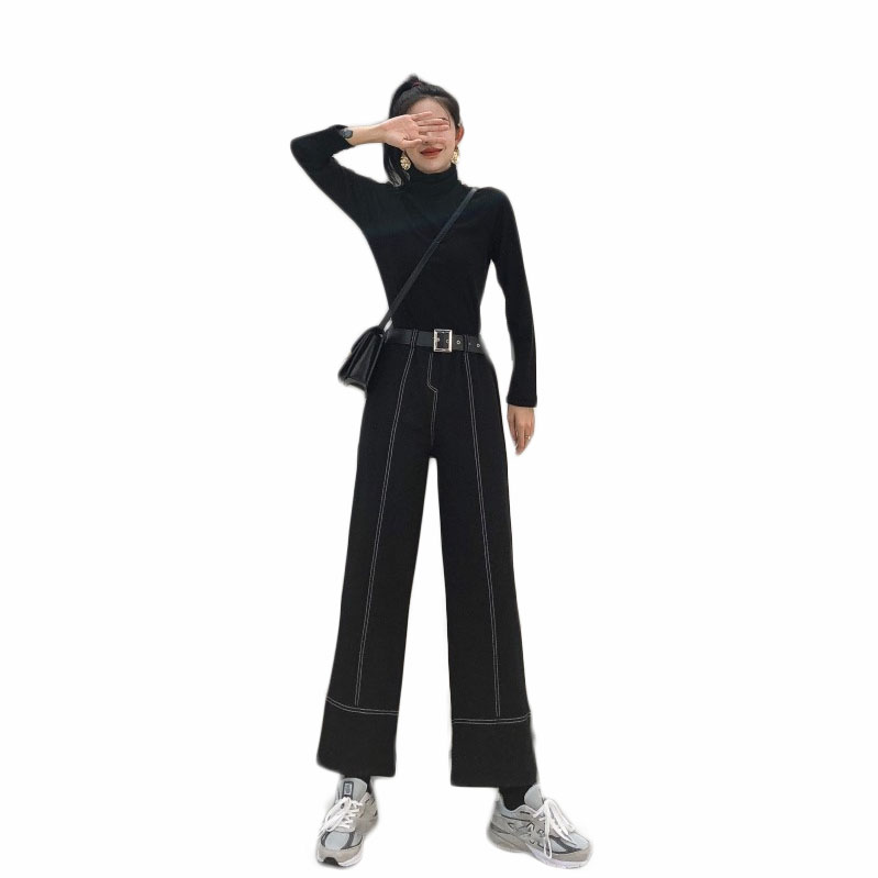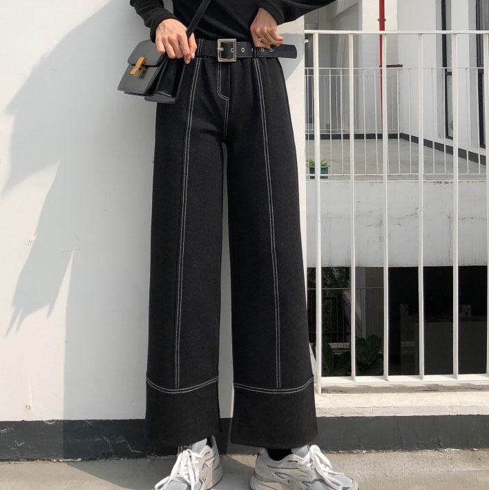 / 復古韓國chic風百搭高腰顯瘦毛呢直筒闊腿褲女秋冬2018新款配皮帶