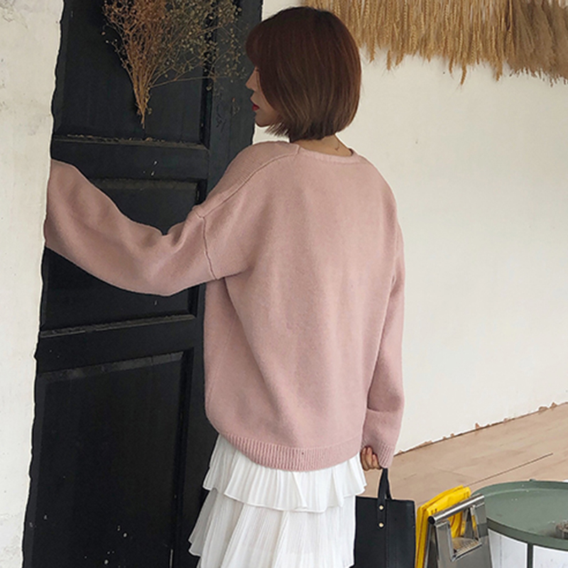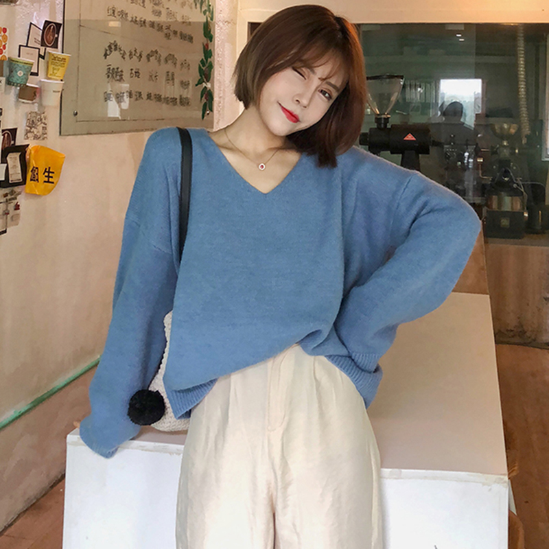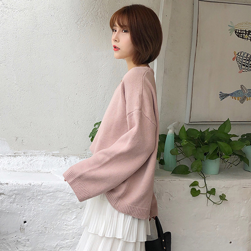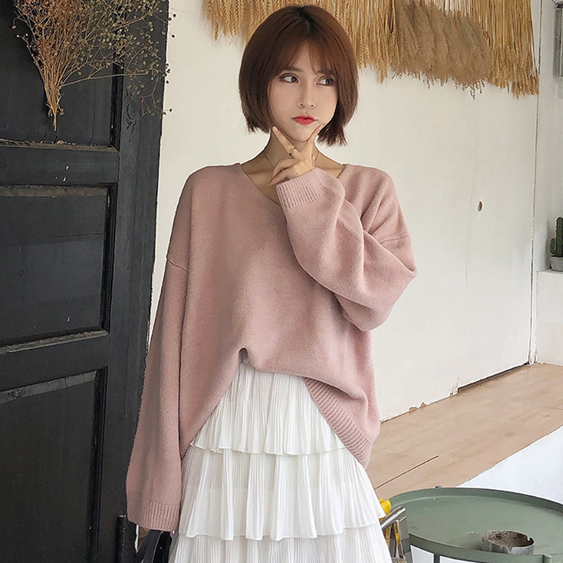 慵懶風小清新毛衣秋裝女2018新款韓版學生寬松針織衫休閑簡約上衣