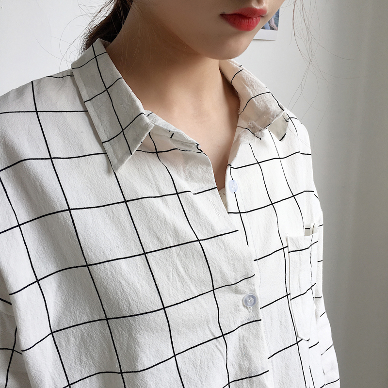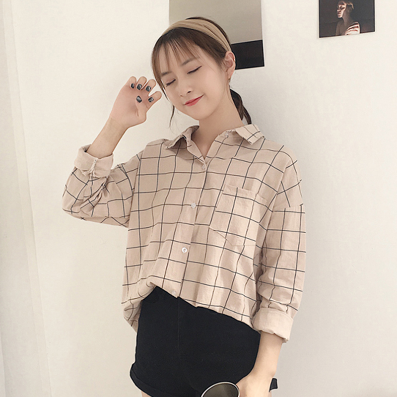 / 小清新俏皮格子襯衫秋裝女2018新款休閑寬松長袖上衣學生時尚外套