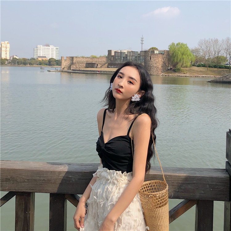 韓版復古新款百搭交叉設計棉質透氣純色時尚小清新內搭吊帶背心女