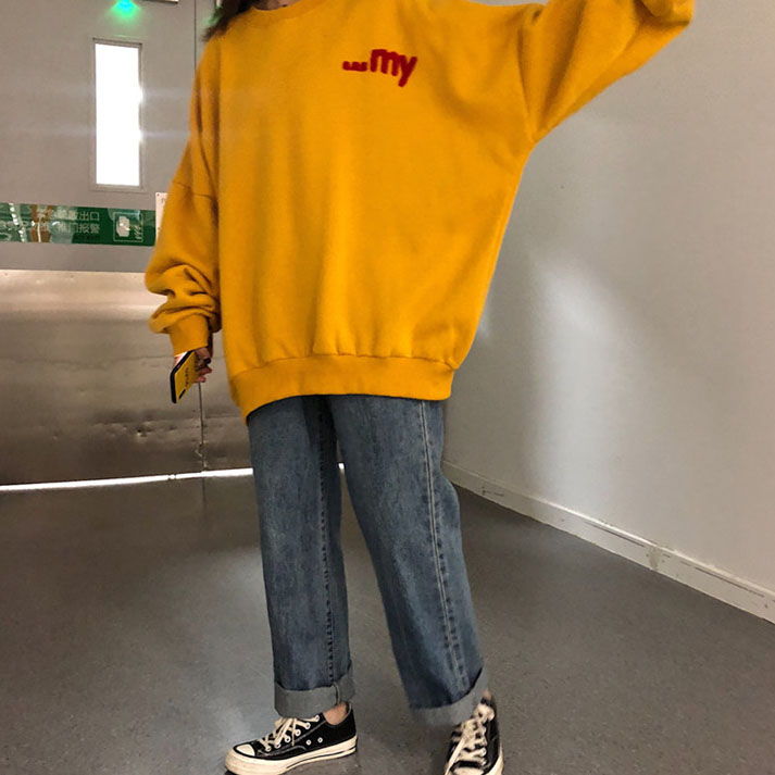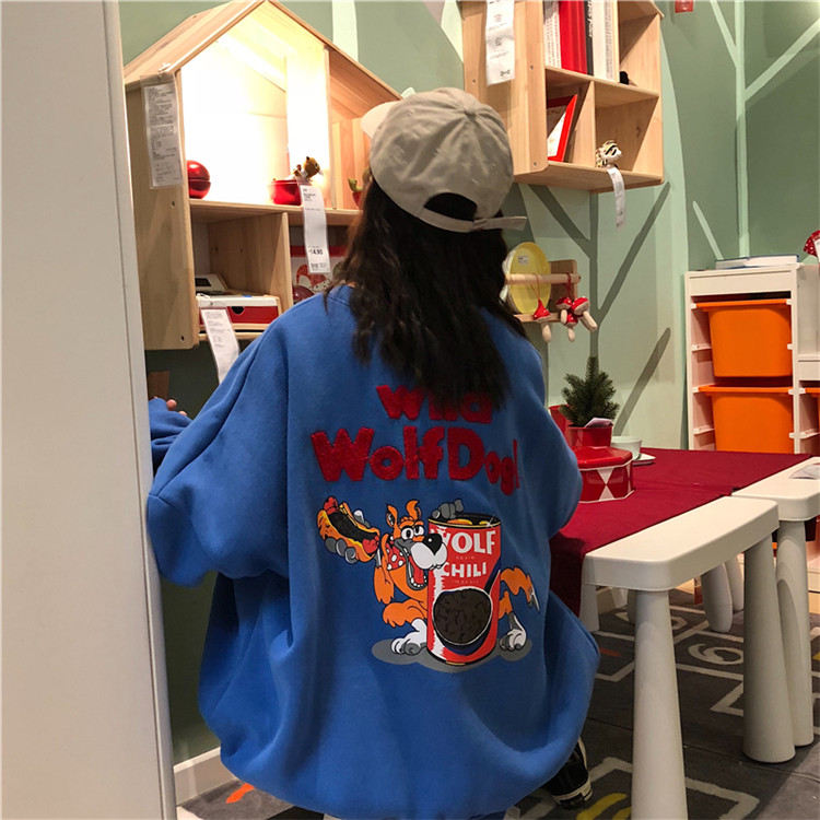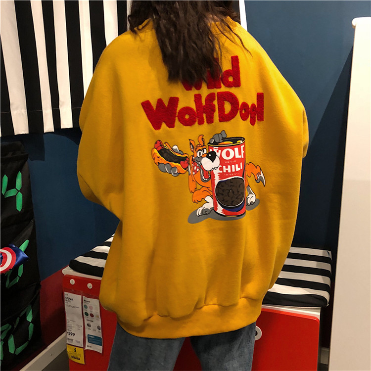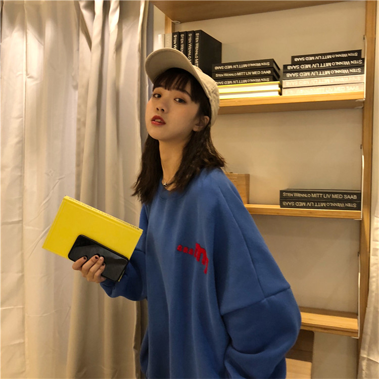 慵懶風上衣女寬松加絨字母卡通搞怪長袖套頭衛衣女秋冬2018新款潮
