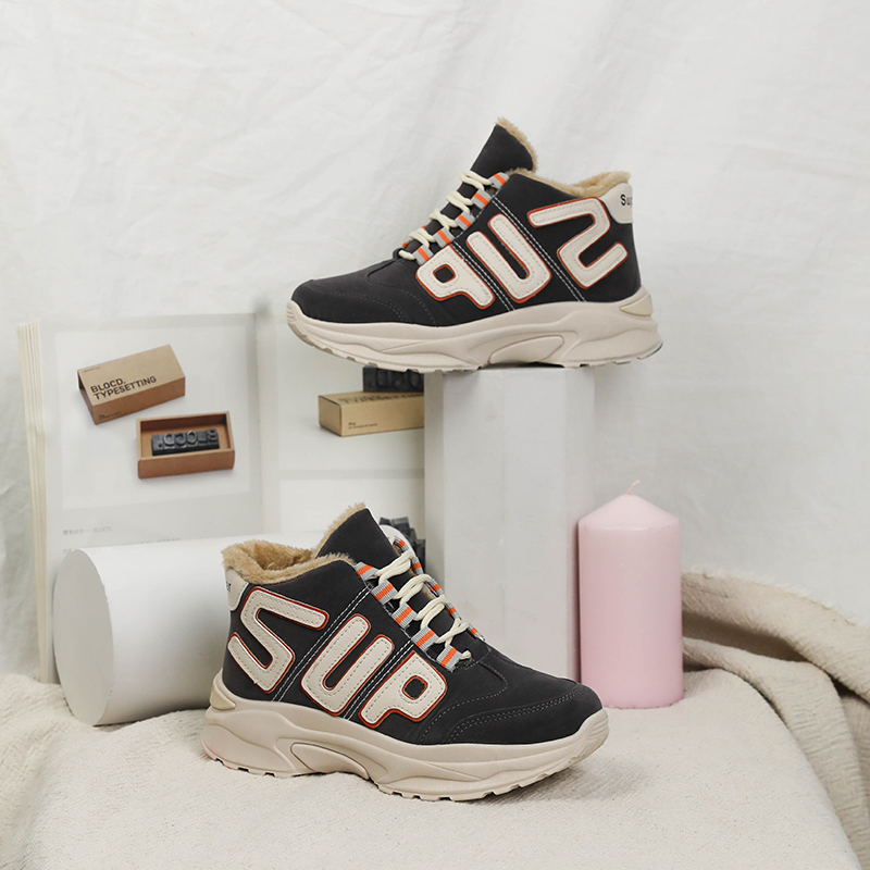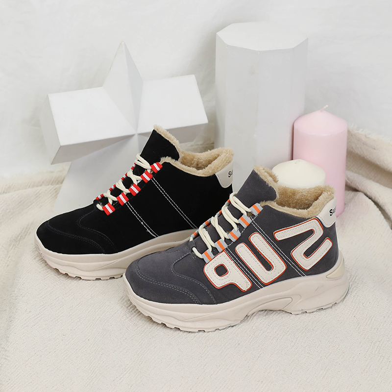 MG小象韓版跑步休閑鞋2018冬季新款時尚加絨運動鞋學生厚底女鞋潮