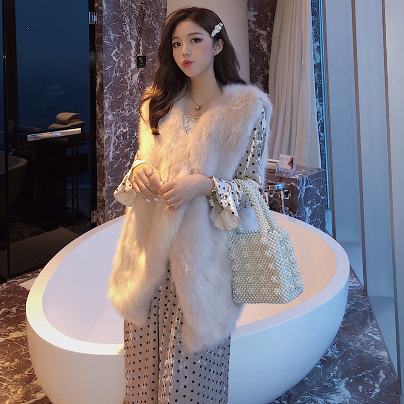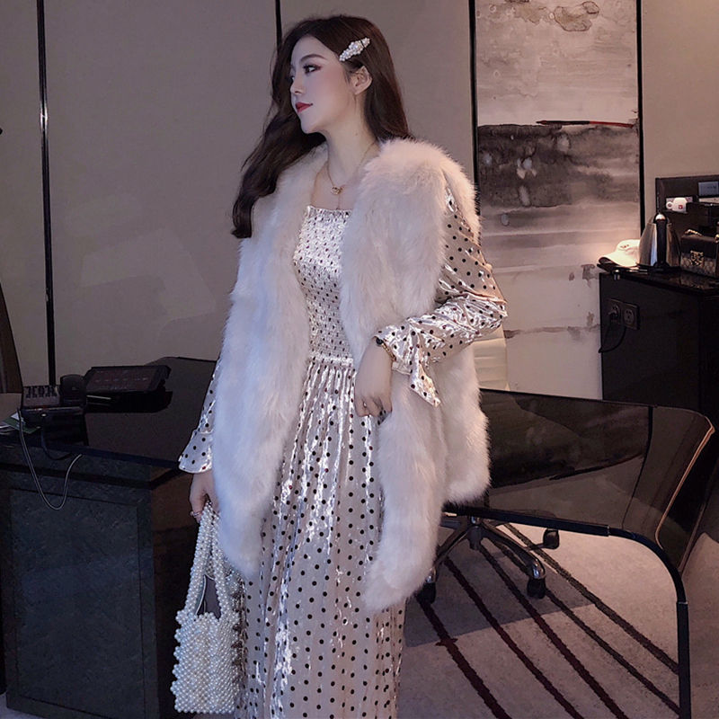 女神套裝秋冬2018新款寬松毛絨背心馬甲時尚波點長款絲絨連衣裙子