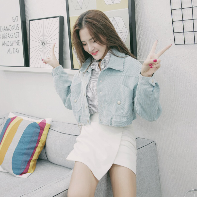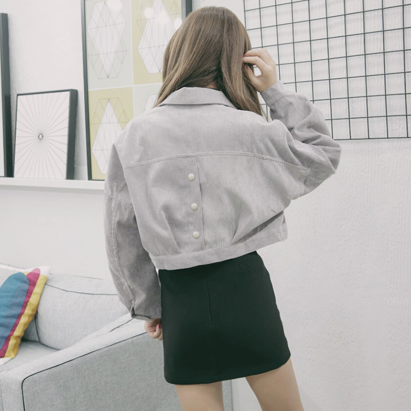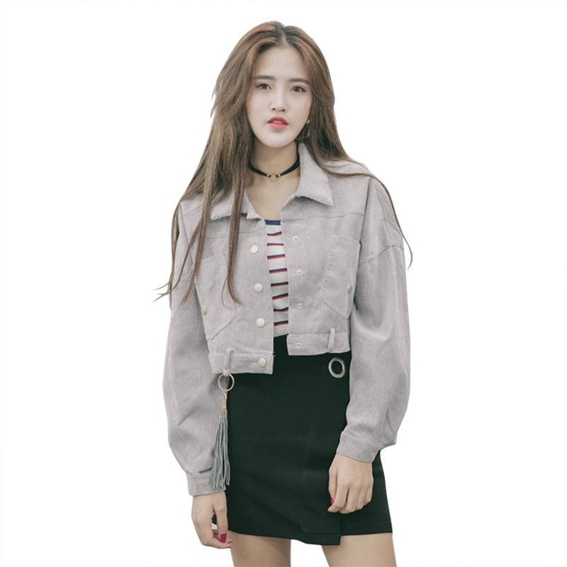 / 春季女裝新款韓版流蘇吊墜大口袋燈芯絨高腰短外套學生休閑上衣潮