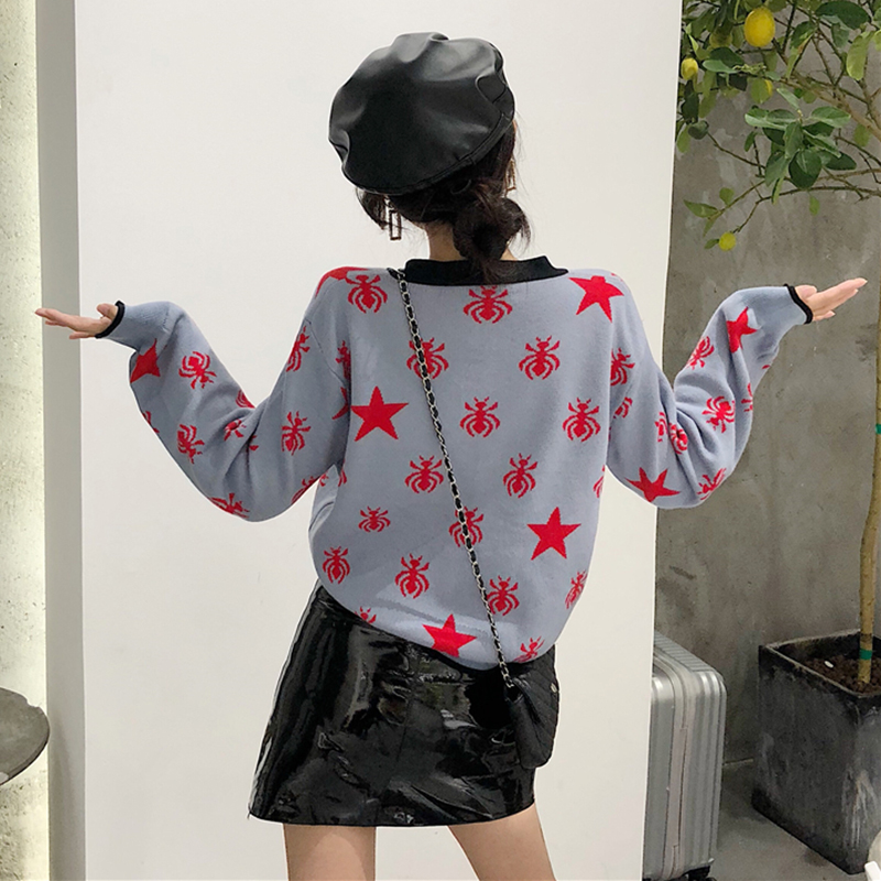 / 兩件套秋裝女2018新款星星提花V領寬松長袖針織開衫亮皮A字短裙子
