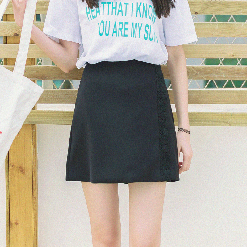 裙子一邊是拼接蕾絲設計噠,小小的細節增添的設計感