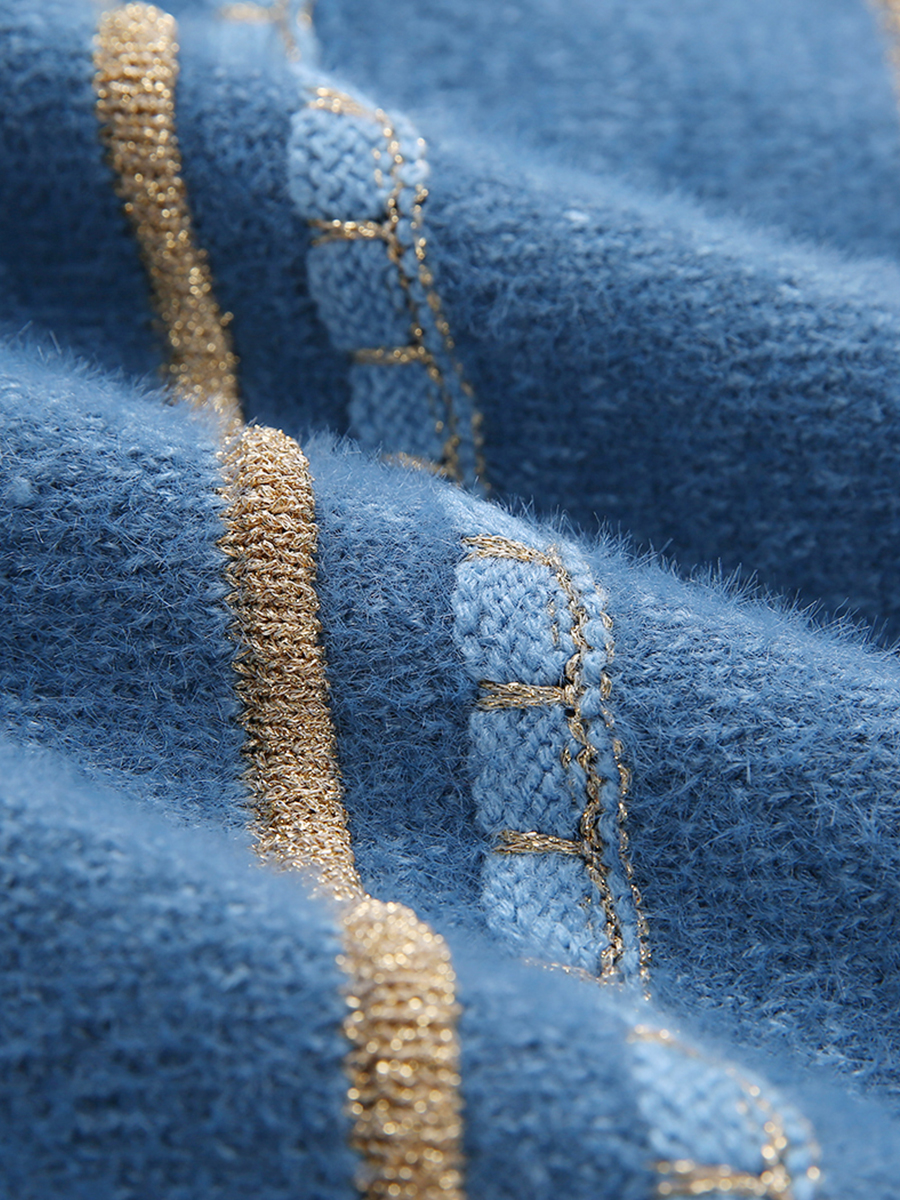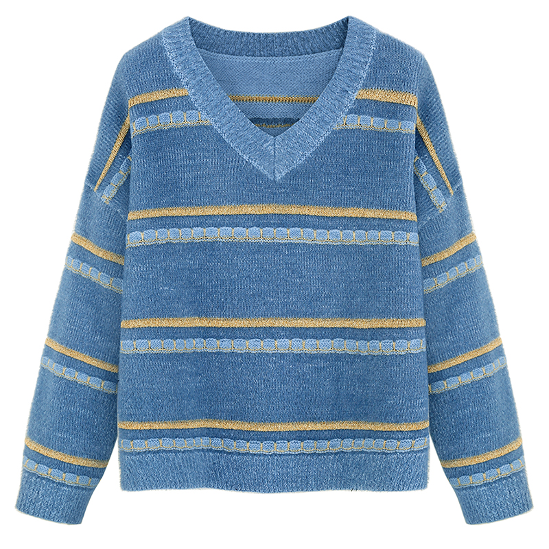 MG小象小清新毛衣女甜美秋冬溫柔風新款套頭寬松V領條紋針織衫潮