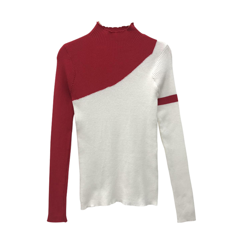 2018韓風新款長袖拼色修身百搭打底毛衣針織衫減齡時尚撞色上衣女