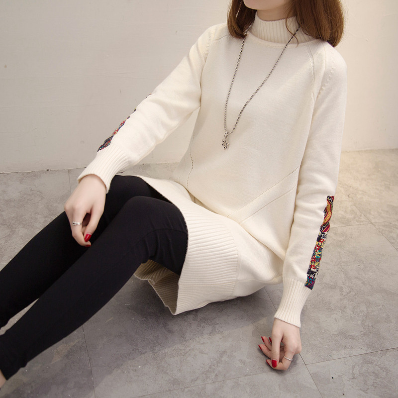 秋冬毛線衣加厚半高領打底針織衫毛衣裙中長款套頭韓版寬松毛衣女